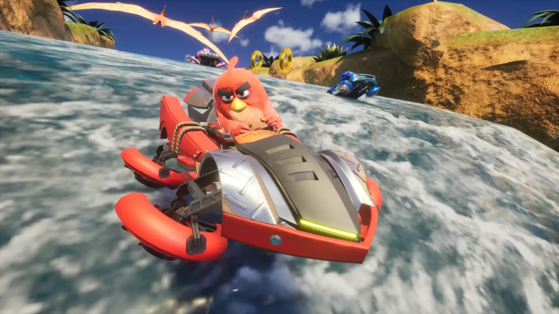 No conteúdo gratuito disponibilizado em Sonic Racing: CrossWorlds, Red chega como personagem jogável, trazendo também seu veículo exclusivo, o “Super Roaster”. Além disso, os jogadores poderão acessar emotes e efeitos sonoros temáticos, ampliando a personalidade do crossover dentro das corridas. Um dos destaques é a inclusão de três novas músicas na Jukebox do jogo: “Go! Theme”, “Go! Theme (Final Lap)” e “Angry Birds Theme”, reforçando ainda mais a identidade da colaboração.
